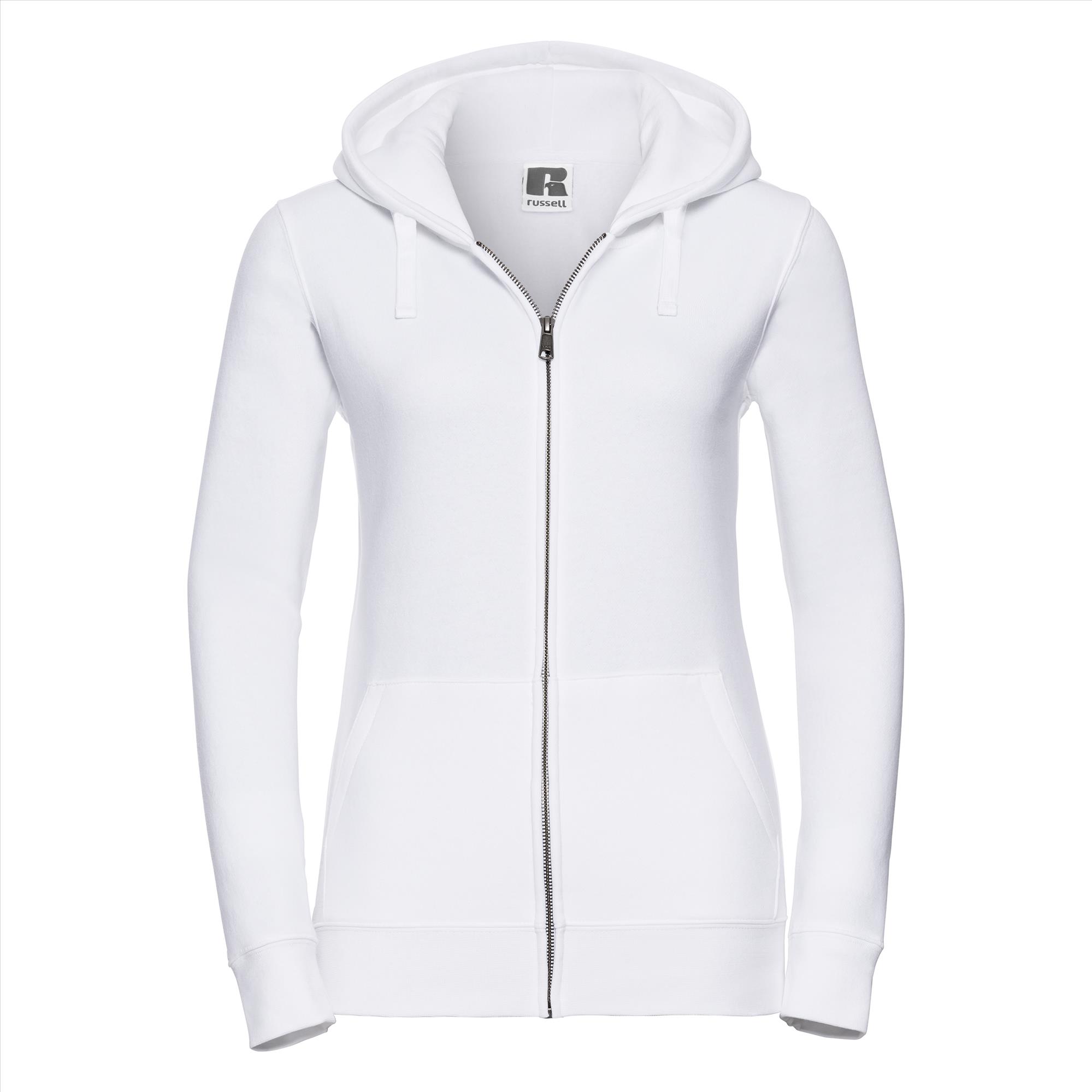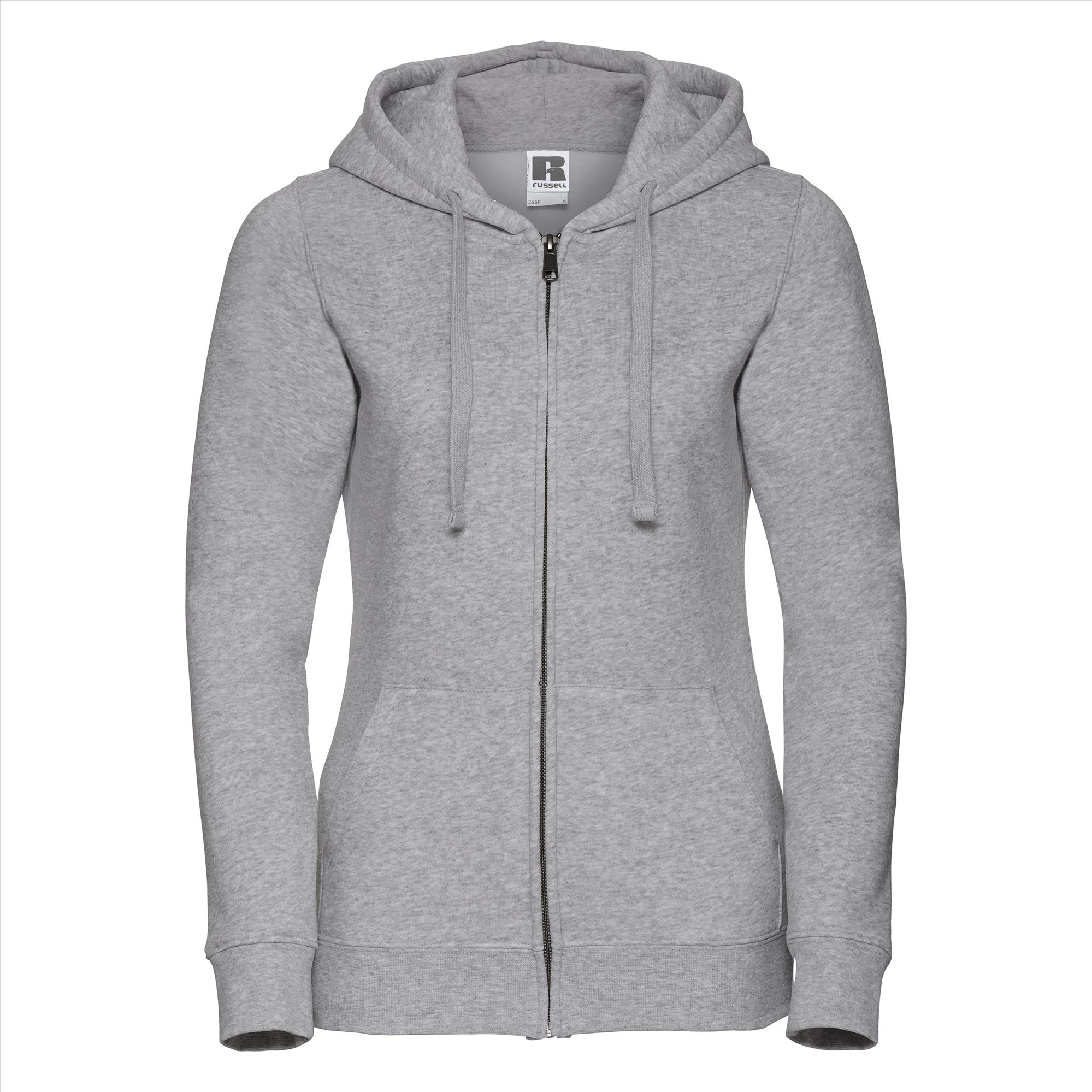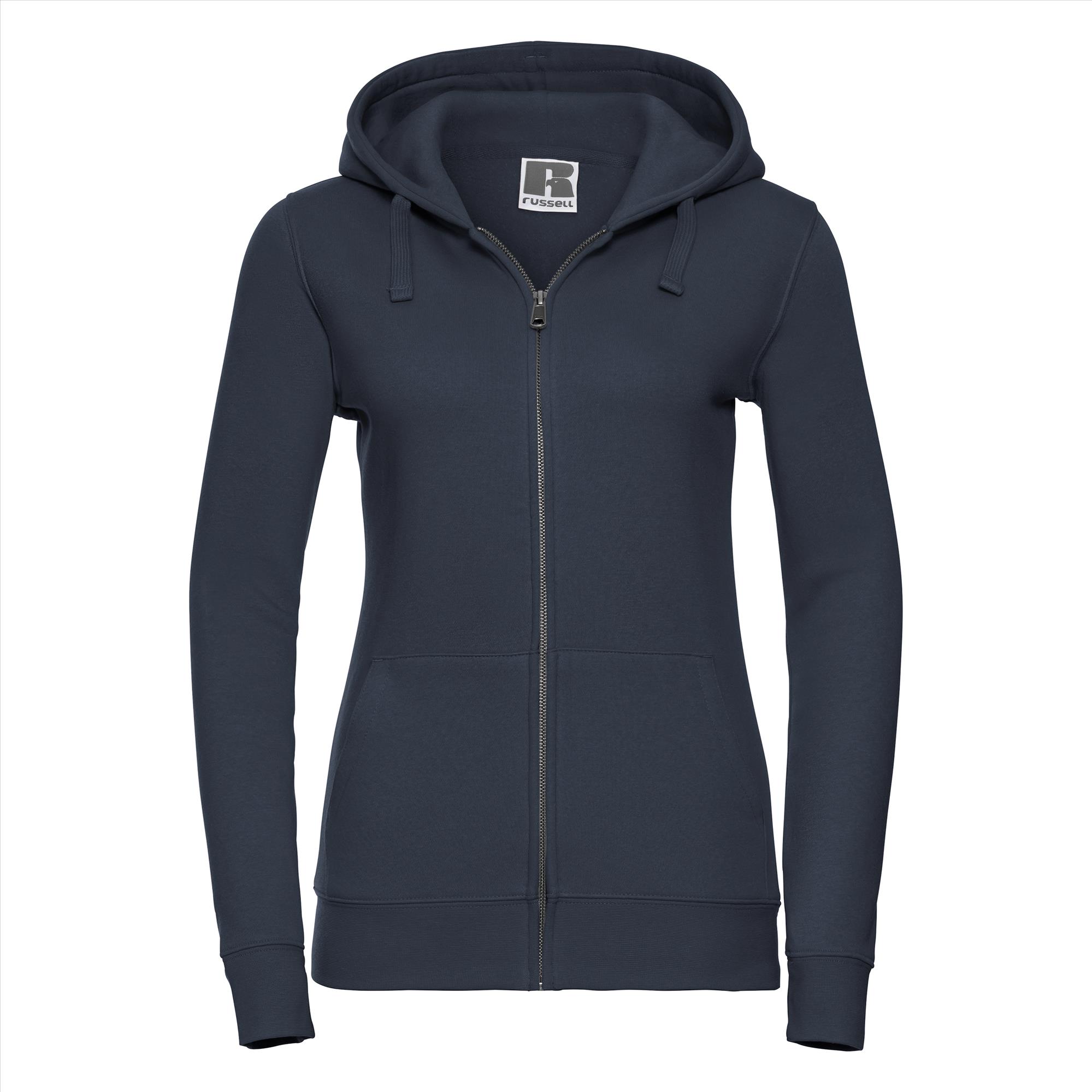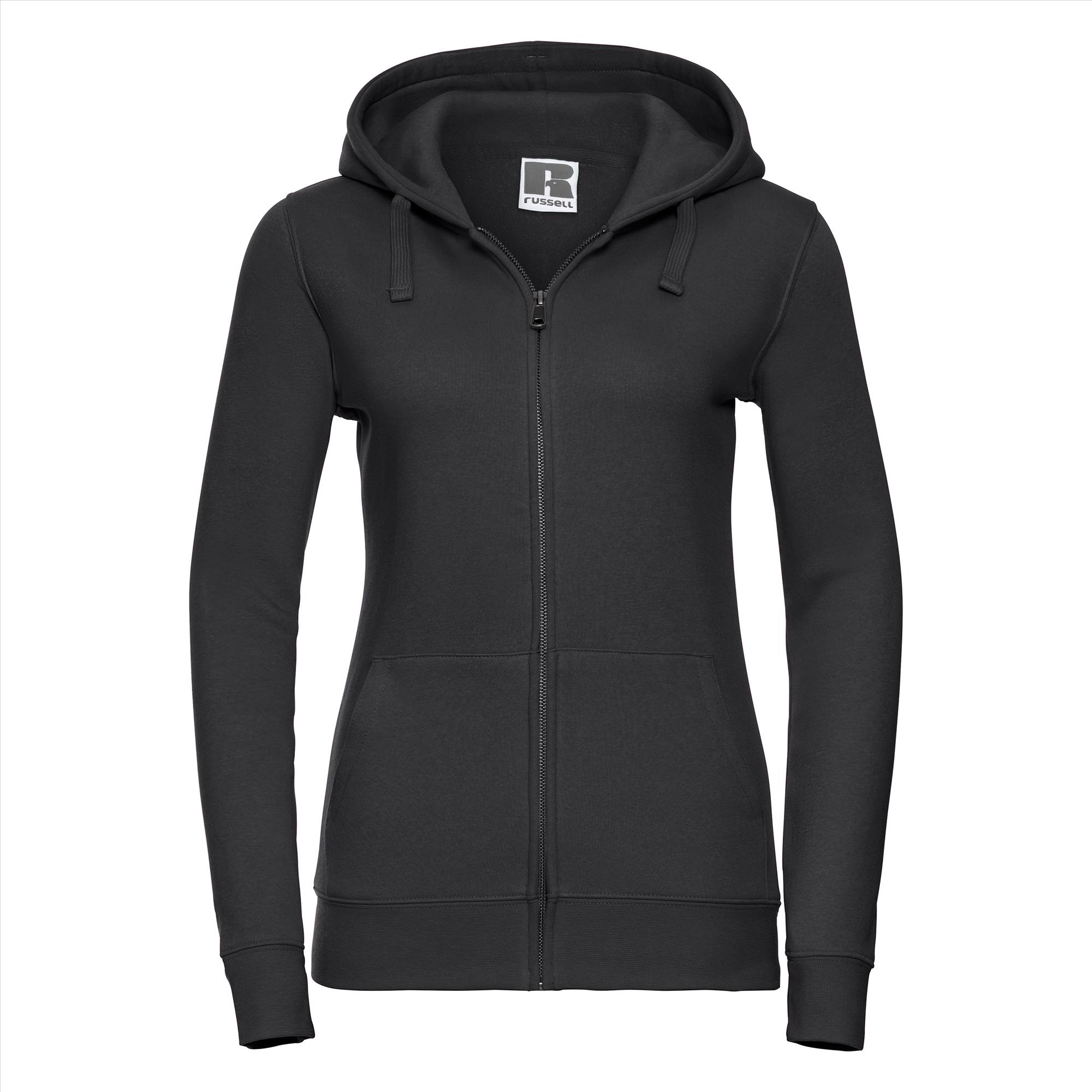 Stoere zip hooded voor de dames, de schouders zijn wat smaller gesneden waardoor deze hoodie een perfecte pasvorm heeft en de buitenste laag is 100% katoen voor een betere printbaarheid.