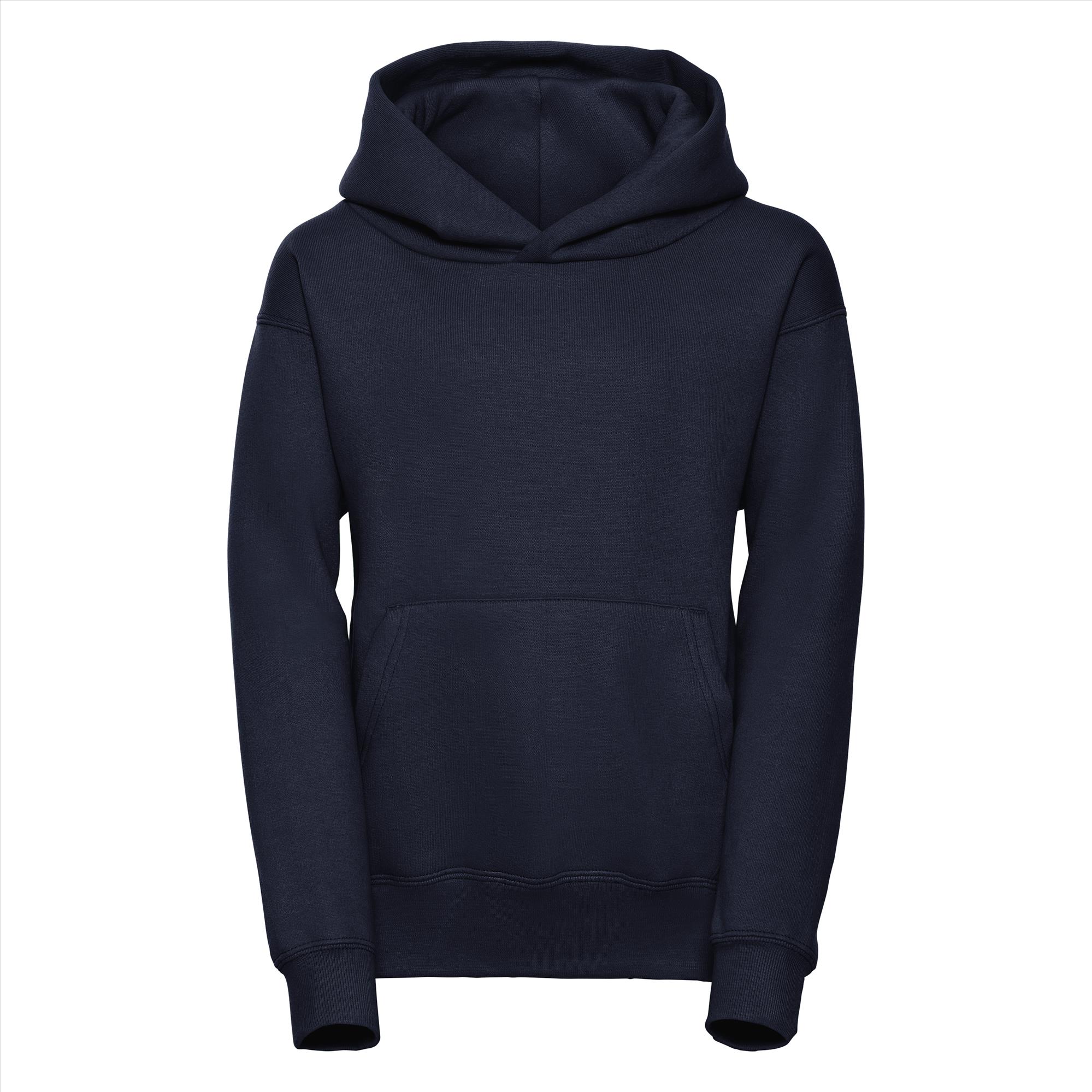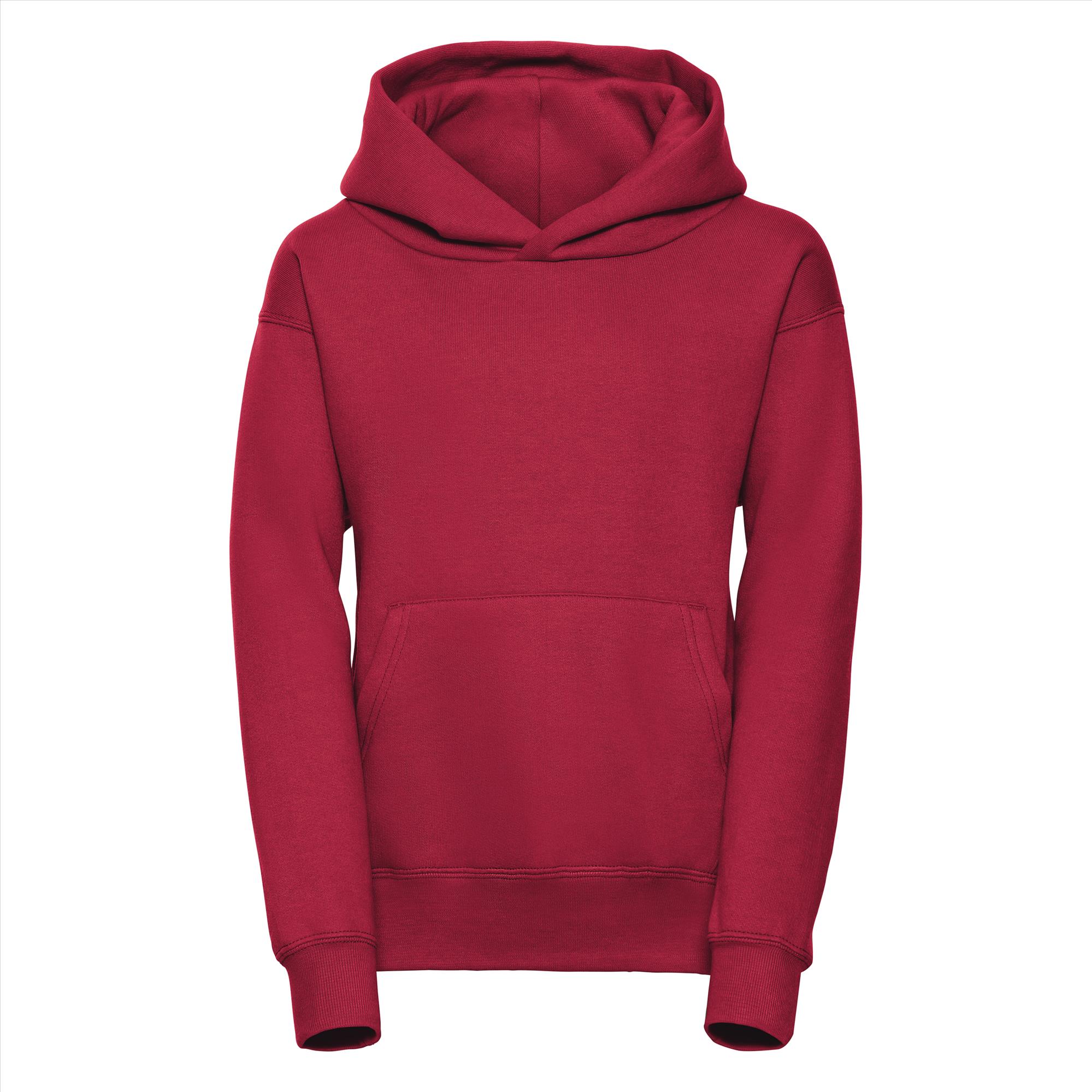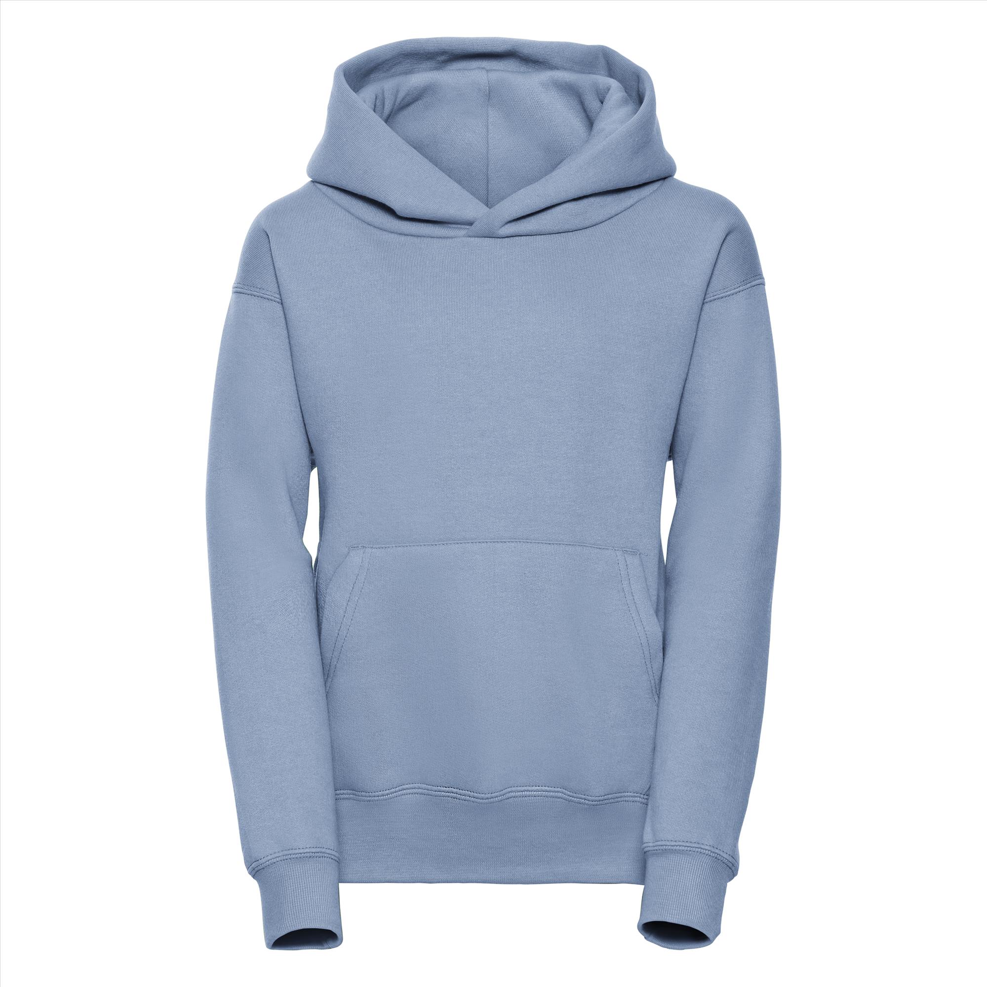 Deze tijdloze hoodie is door de stof samenstelling bijna onverwoestbaar. Door de katoen/polyester verhouding krimpt en verkleurd deze amper. De kangoeroezak met sierlijke stiknaden maakt het helemaal af en zonder koord is de trui ook nog eens veilig.