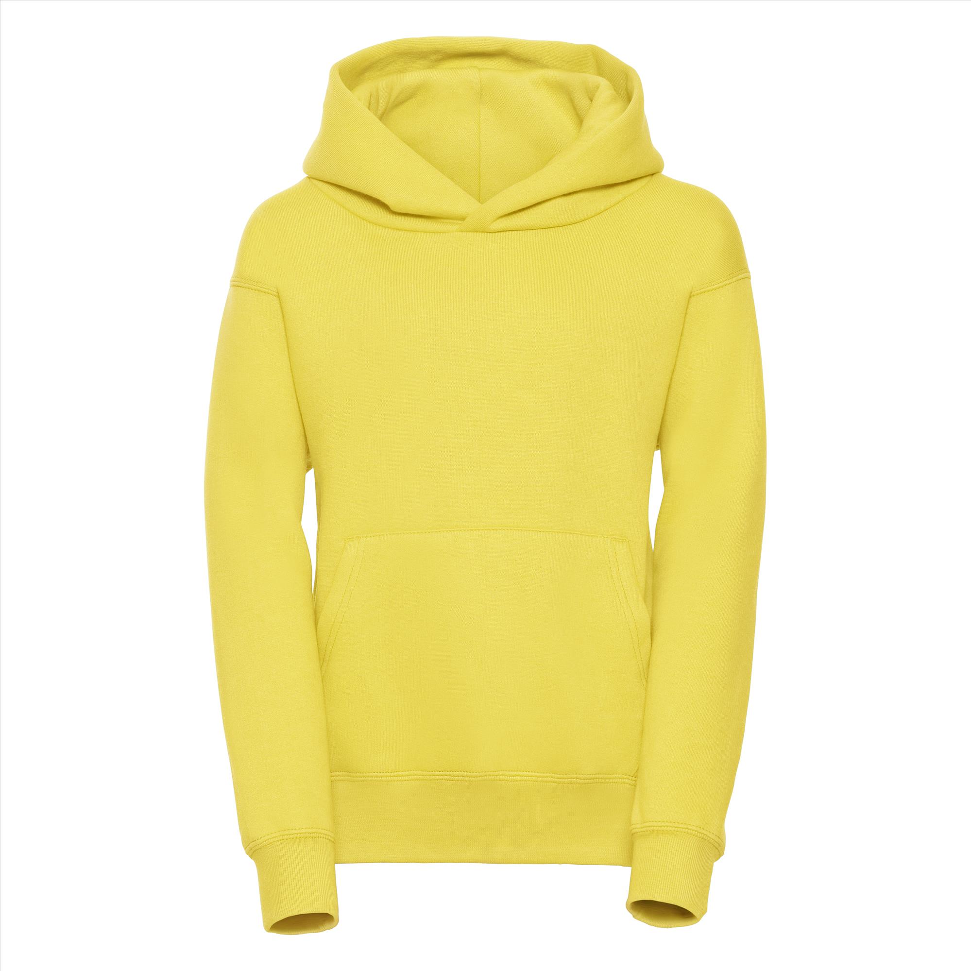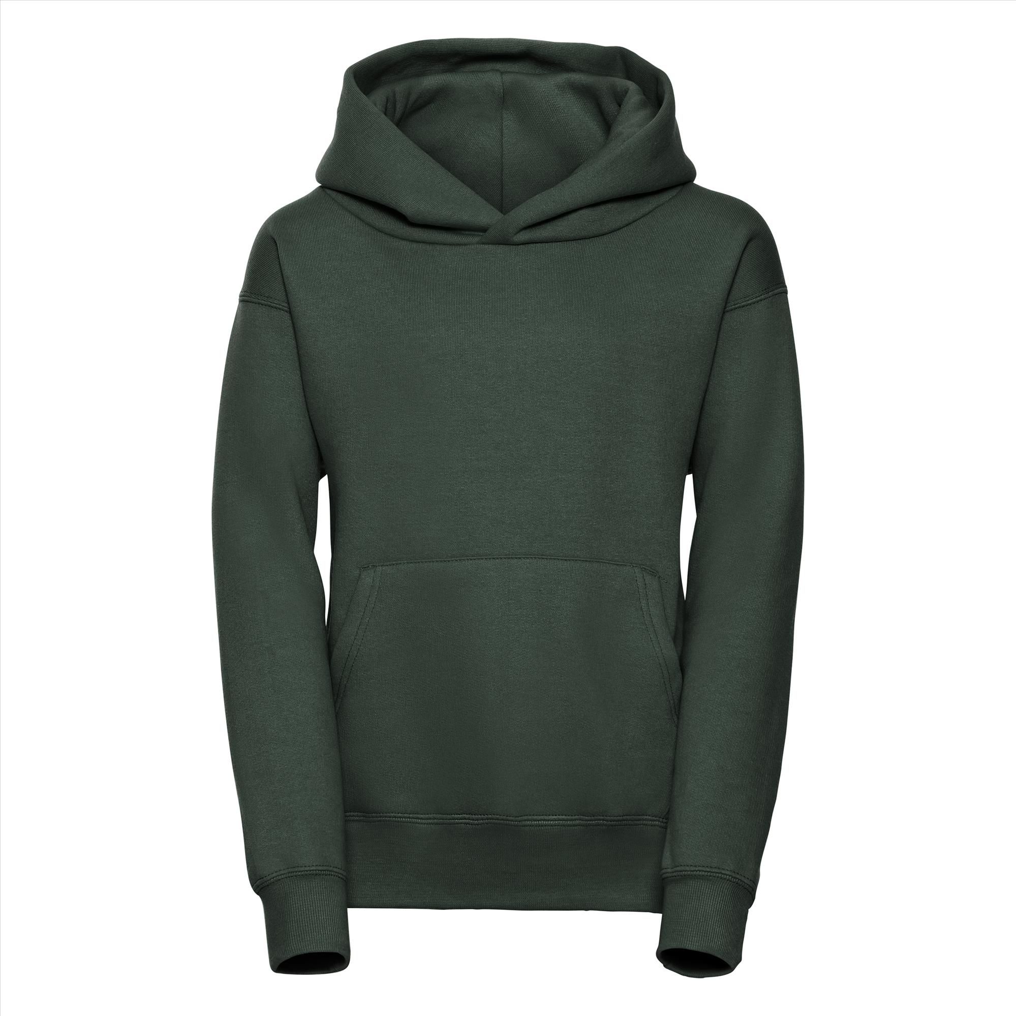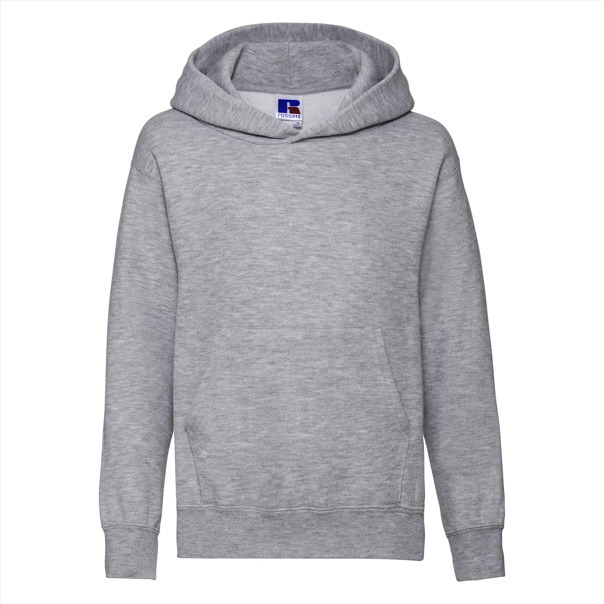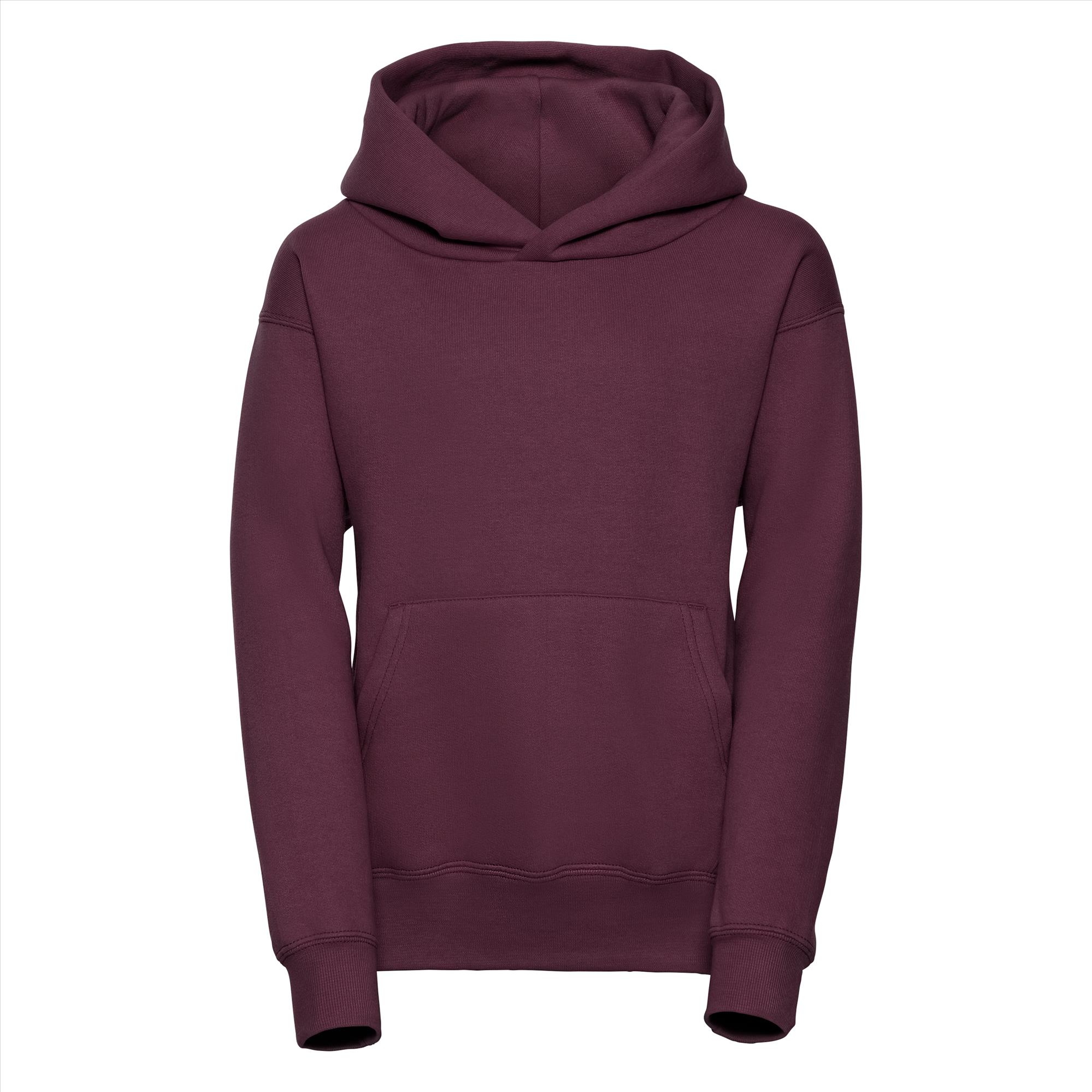 Deze tijdloze hoodie is door de stof samenstelling bijna onverwoestbaar. Door de katoen/polyester verhouding krimpt en verkleurd deze amper. De kangoeroezak met sierlijke stiknaden maakt het helemaal af en zonder koord is de trui ook nog eens veilig.